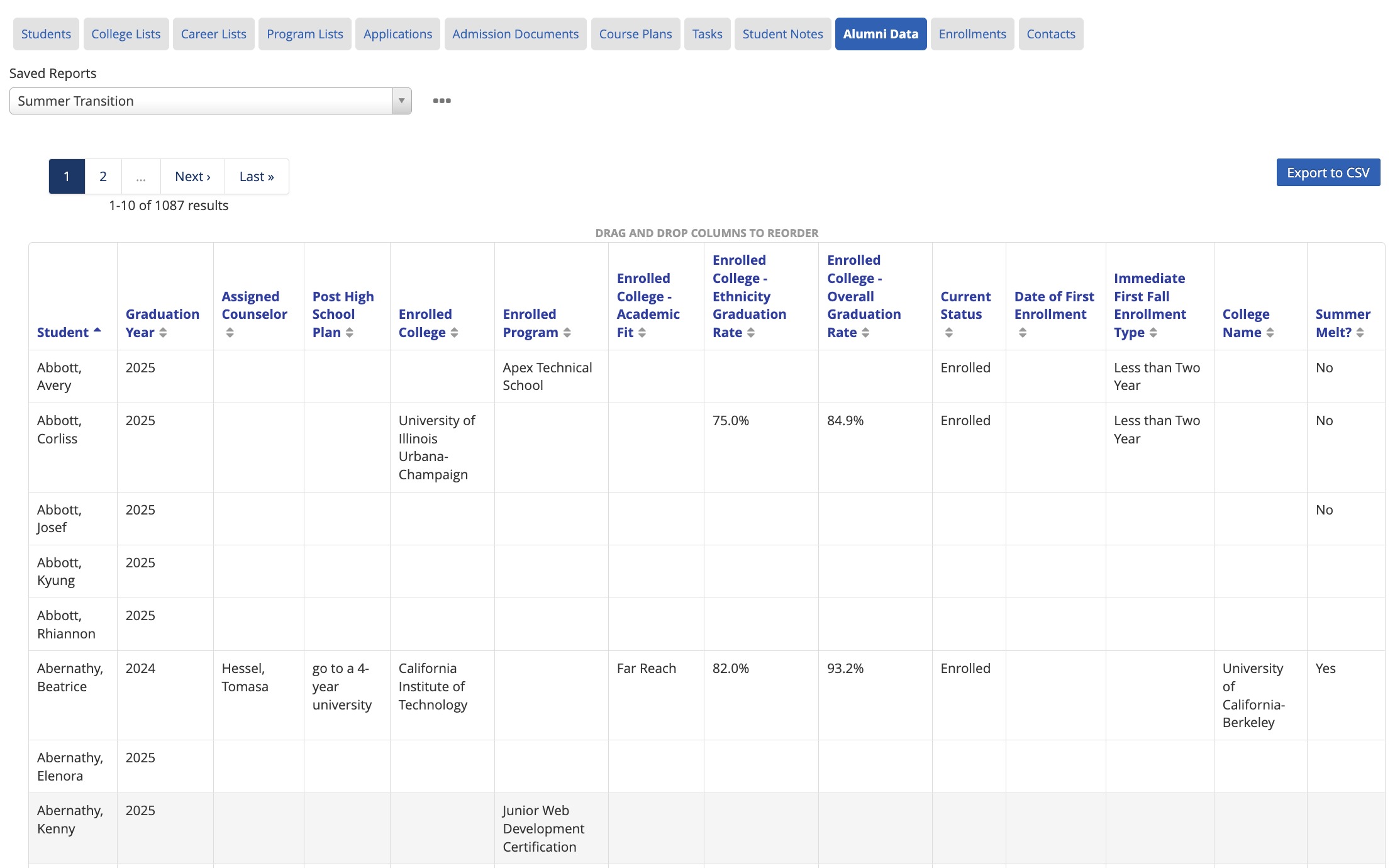 Tracking student transition data early in the summer leading up to college or a program provides crucial, actionable insights that allow schools to be proactive rather than reactive. This report type helps track data that highlights: