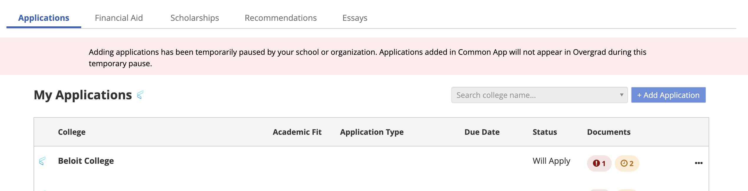 - changes made to Common App will not be reflected on Overgrad until application editing resumes