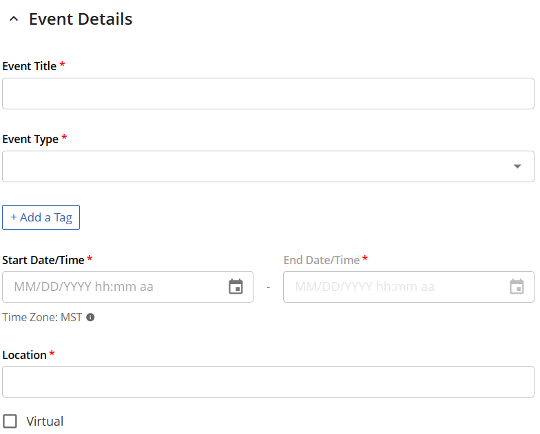 - Additional Details: rich-text field for more in-depth content like agendas, instructions, or links