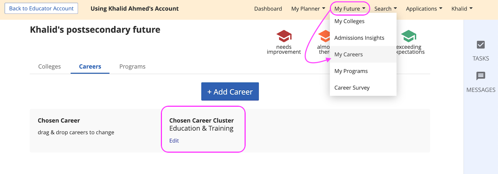 Students can also self report this field by going to My Future -> My Careers and selecting their Chosen Career Cluster..
