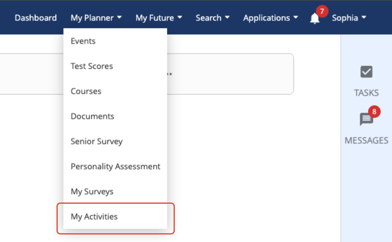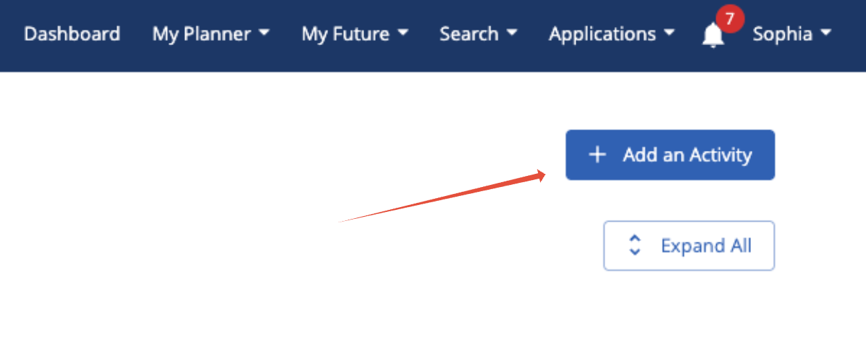 - From your student dashboard, navigate to the My Planner > My Activities link.